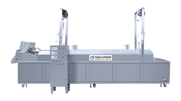 ·全不銹鋼制造,自動程度高、有自動、手動起吊系統(tǒng)、獨特的產(chǎn)品輸送系統(tǒng)、排渣系統(tǒng)、加熱系統(tǒng)、油循環(huán)系統(tǒng)、排煙系統(tǒng)、電控系統(tǒng)等組成。采用網(wǎng)帶疏送產(chǎn)品變頻或無級調(diào)速。